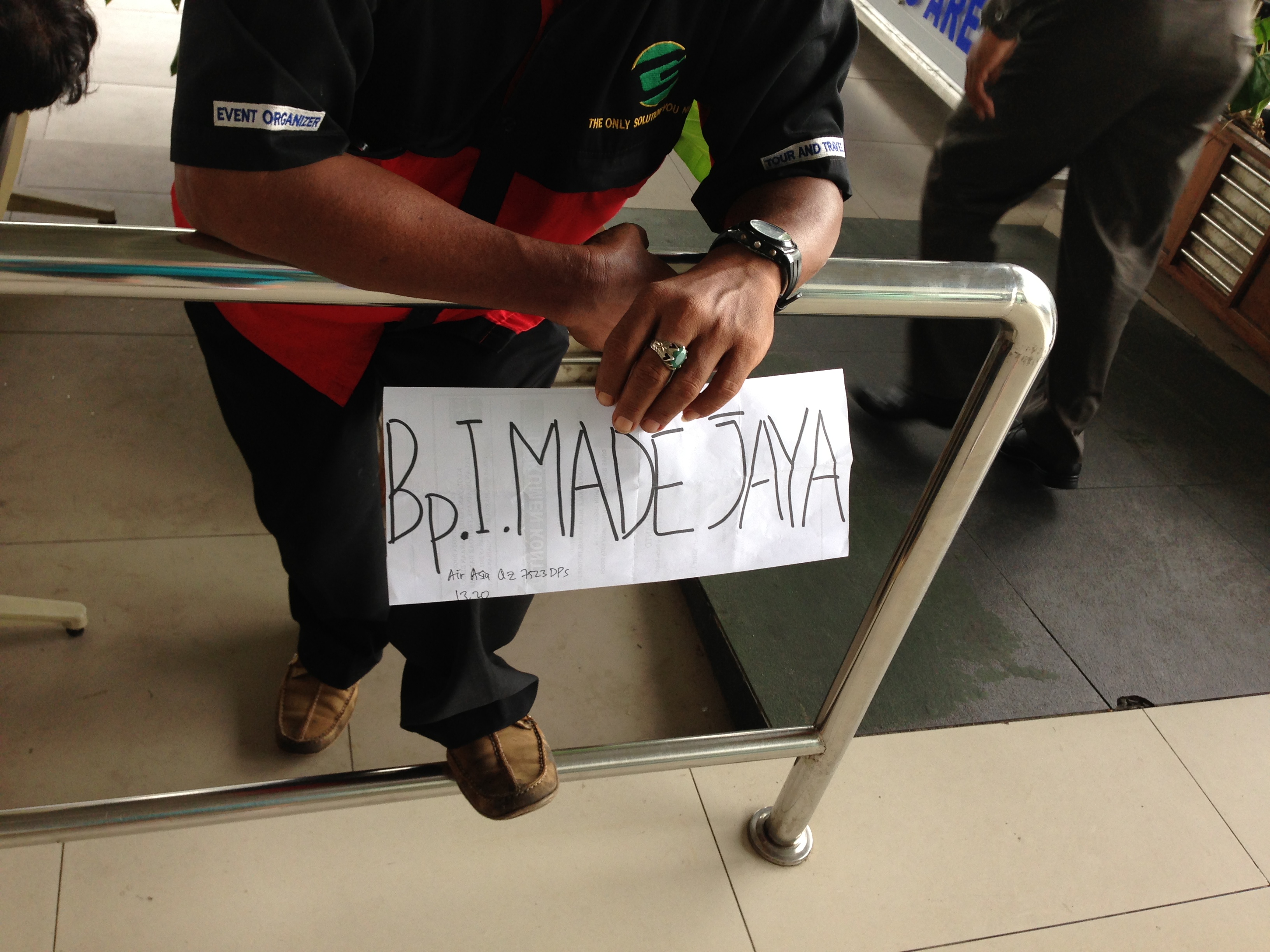 An easy exit with only my carry-on slung over my shoulder, I bound through the halls and out into the sunlight with eyes dancing from one sign, with a hand scrawled name across it, to the next.  The delightful young lady at the front desk at my previous hotel had scheduled my pick up, so I was confident my chariot would be waiting. My eyes fixed on a single sign and I paused wondering if this was the one. It made me smile because it was written like a traditional Balinese name, listing the birth order first and then the name. True, it wasn’t exactly my name or even that close, but I am a ‘made’ [pronounced ma-day] and it could be a strange miss-heard translation of  ‘Tawnya’…maybe. In the absence of any other viable option I approached with an ‘All-American’ smile and outstretched hand. “Hello, I’m Tawnya. Are you going to M-One hotel?”